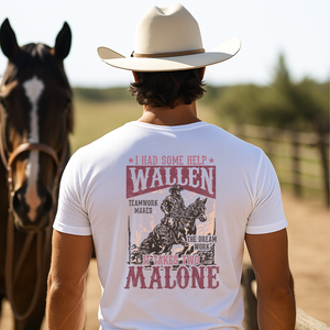 Camiseta casual de corte holgado con cuello redondo, manga corta, 100% algodón, con estampado DTF con diseño vaquero Wallen Malone. Perfecta para el estilo diario.