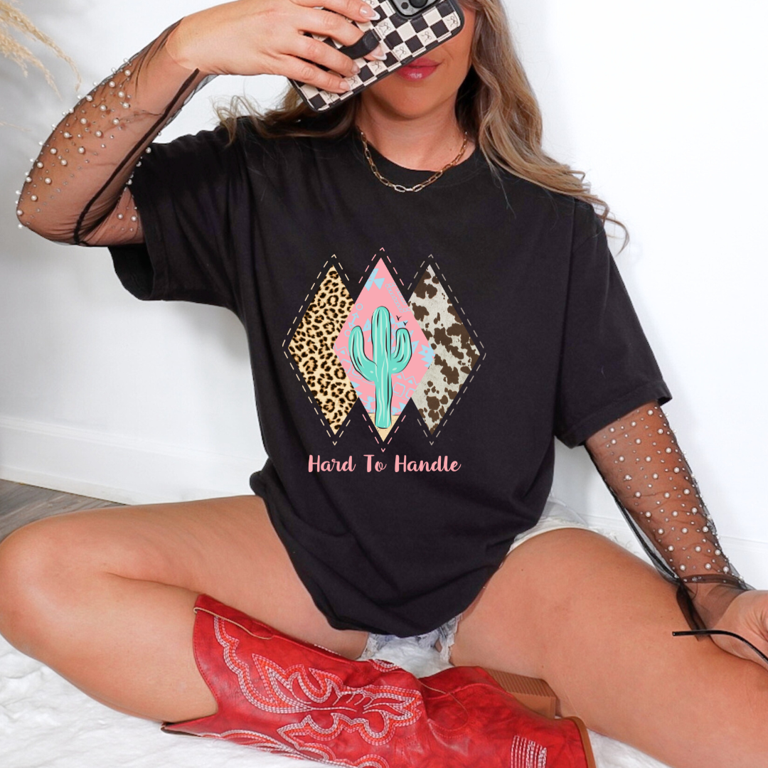 Camiseta casual de corte holgado con cuello redondo, manga corta, 100% Algodón, con diseño vaquero Hard to handle. Perfecta para el estilo diario.