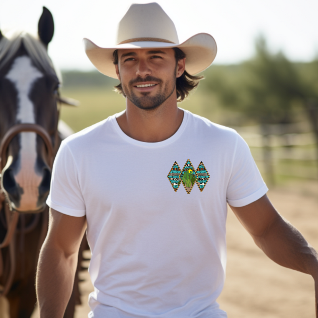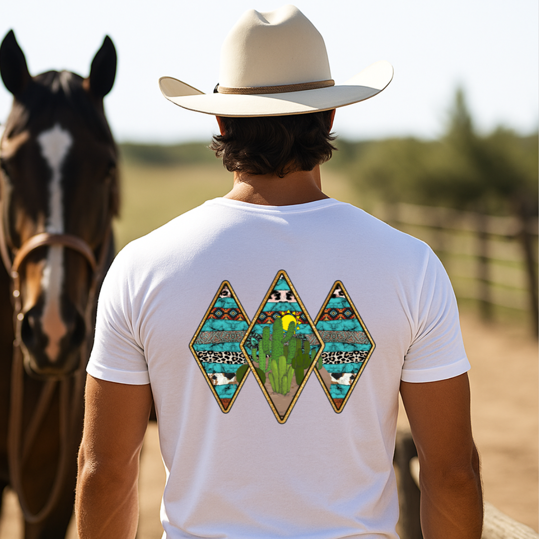Camiseta casual de corte holgado con cuello redondo, manga corta, 100% Algodón, con diseño vaquero Cactus . Perfecta para el estilo diario.
